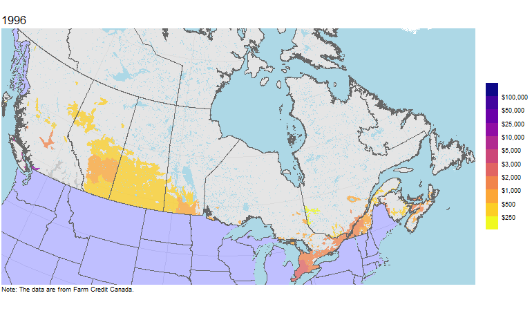 Mapping farmland values in Canada