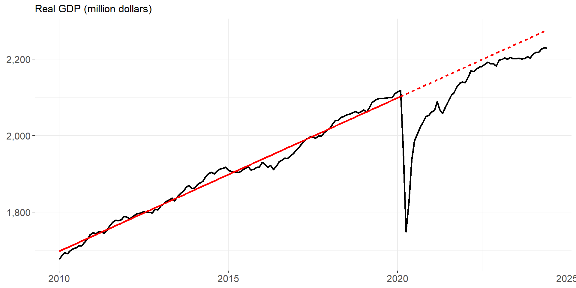 GDP growth: Q1 2024 = +1.4%, and Q2 2024 +2.8%